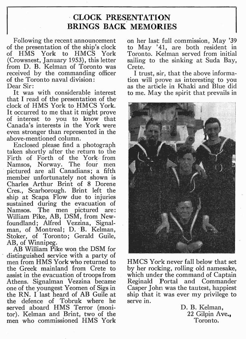 Article from the Mar 1953 issue of the Crowsnest magazine that mentions AB Guile serving in HMS TERROR