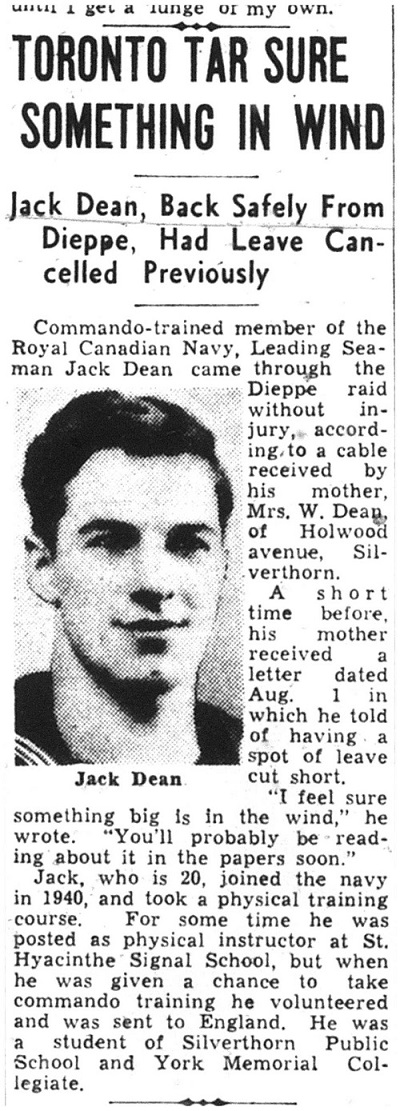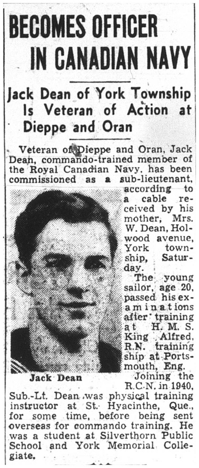 Jack's grew in the Silverthorne area of what is now Toronto, ON during the Second World War and attended Silverthorne Public School and York Memorial Collegiate. He was trained as a Commando in Combined Operations and served in the Dieppe Raid.
