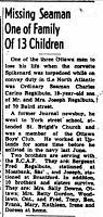 Article on casualties and one survivor of HMCS SPIKENARD - Toronto Star Feb 1942
