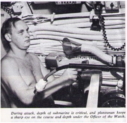 Fred Schatz on helm in HMCS OKANAGAN in April 1970