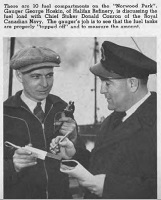 (DC09) SS ELMBRANCH former SS NORWOOD PARK (DC10) Gauger George Hoskins of the Halifax Refinery speaking with Chief Stoker Donald Conron onboard SS Norwood Park
