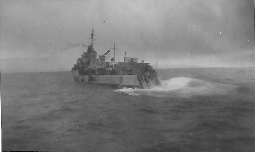 (DC01) Chief Stoker Donald Conron (DC02) Chief Stoker Donald Conron onboard HMCS WASAGA (DC03) HMCS WASAGA iced-up Chief Stoker Donald Conron on the port side of WASAGA by the bridge - photo looking aft. (DC04) HMCS WASAGA J162