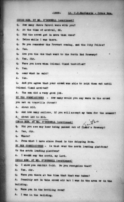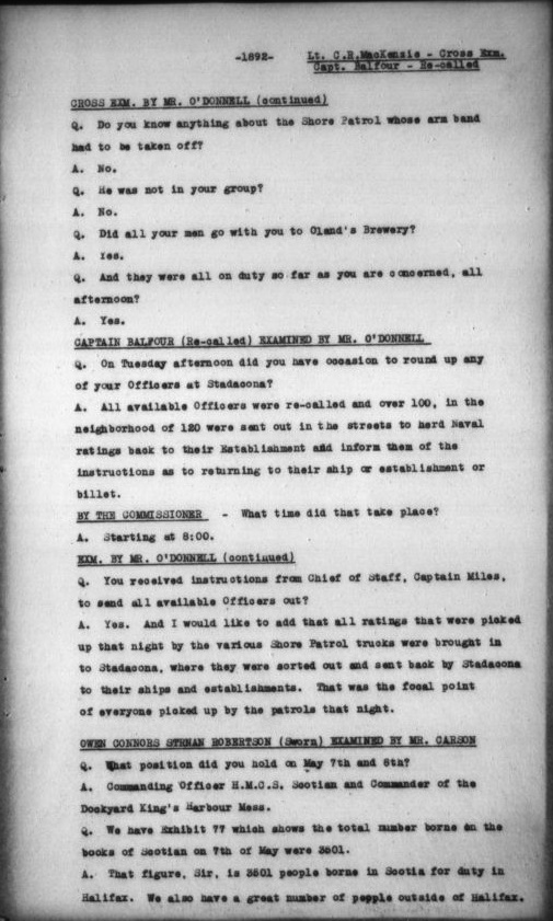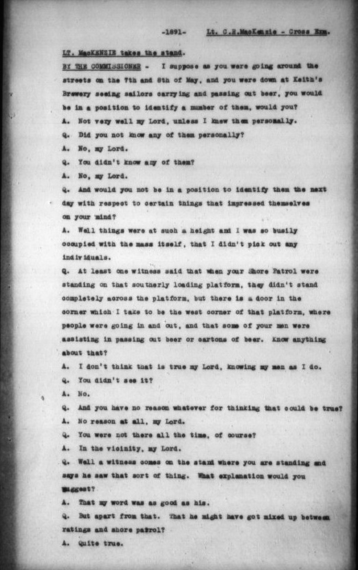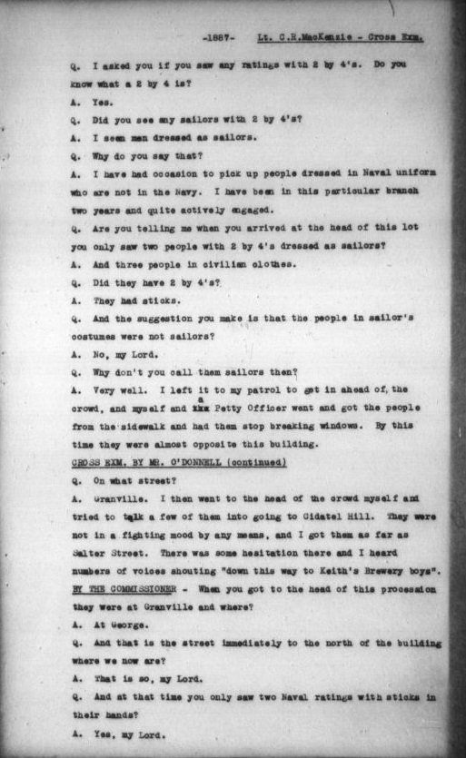 Lt Colin MacKenzie's testimony at the inquiry into the Halifax V.E. Day Riots