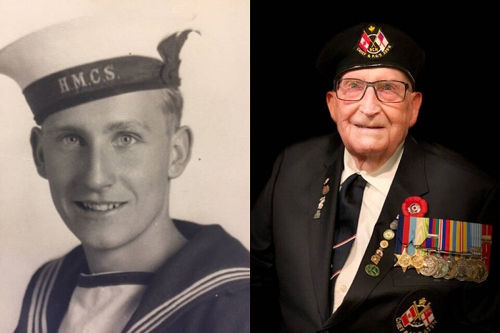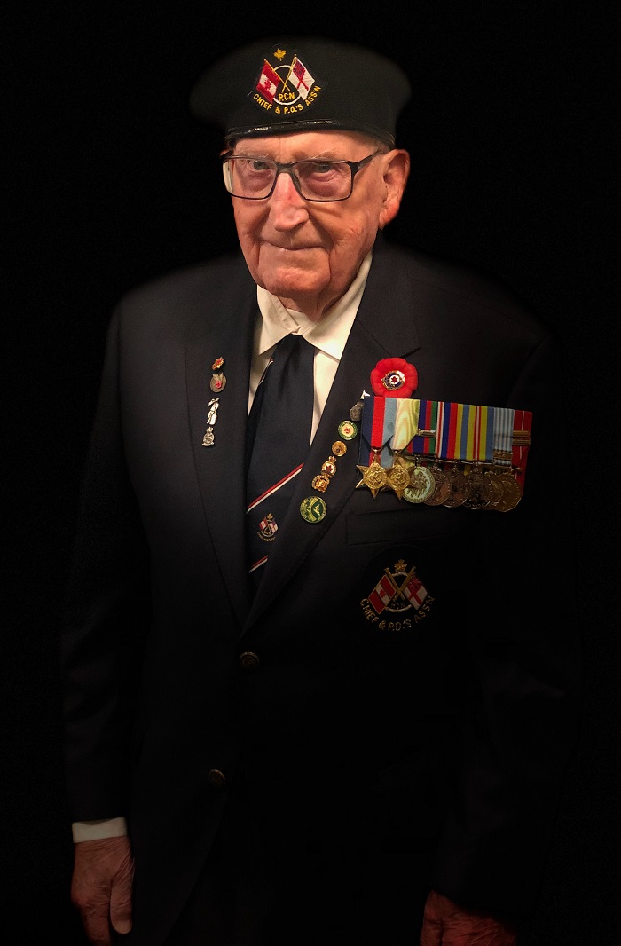 Bob served in the RCNVR (service number V31167) from 18 Mar 1942 to 1945, serving on both coasts.. He joined the RCN 07 Jul 1946 and retired 22 Jan 1968 as a C2ER (service number 23051-E) and served in the Korean War. After retirement in 1968 he went to work in the Graving Dock as a crane operator for 20 years.