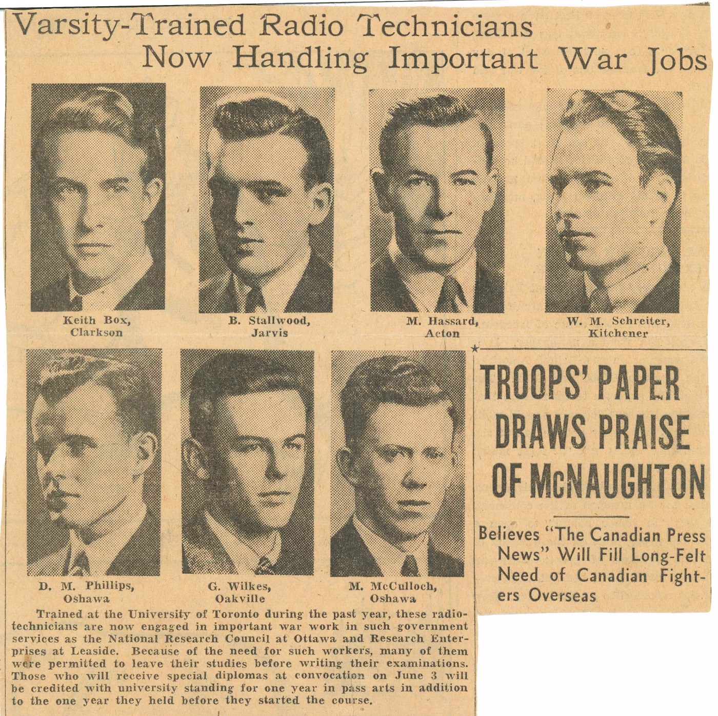 (JMH007) Article on University of Toronto Students supporting the war effort