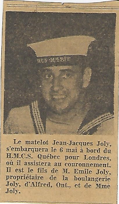 (JJJ01) Article on J.J. Joly drafted to HMCS STADACONA (JJJ02) Article on J.J. Joly drafted to HMCS QUEBEC (JJJ03) J.J. giving communion to grand dogs