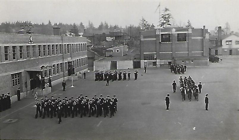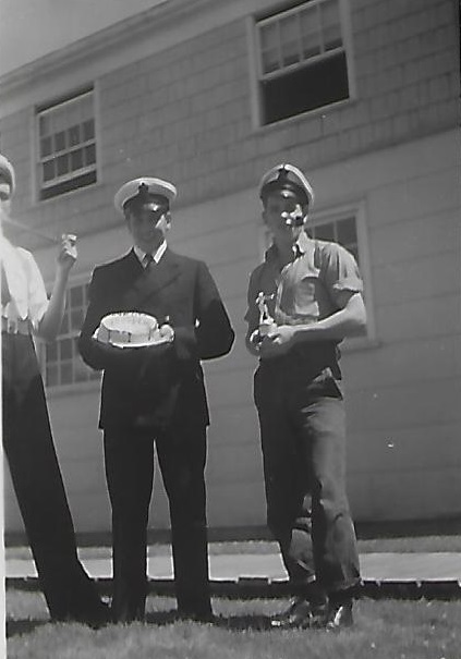 (JJJ26) J.J. Joly on the right - location unknown (JJJ27) Staff of HMCS BYTOWN (JJJ28) On parade at HMCS CORNWALLIS - PO1 Joly Platoon PO (left side of photo) (JJJ29) PO1 Joly receiving a trophy award at HMCS CORNWALLIS