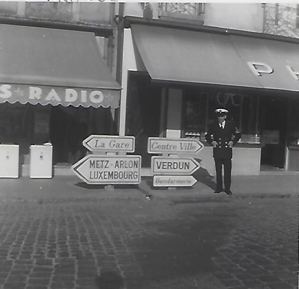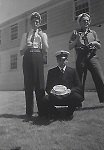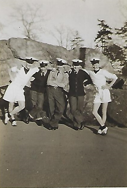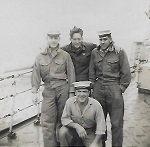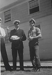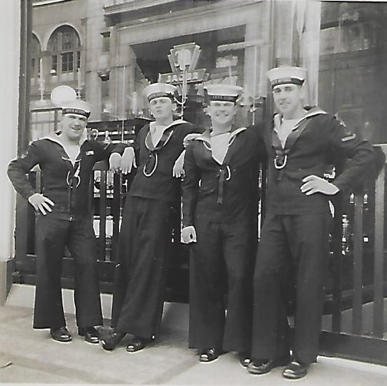 (JJJ16-JJJ18) HMCS QUEBEC sailors ashore in France (JJJ17) LS J.J. Joly 1st on right (JJJ18) Marville, France