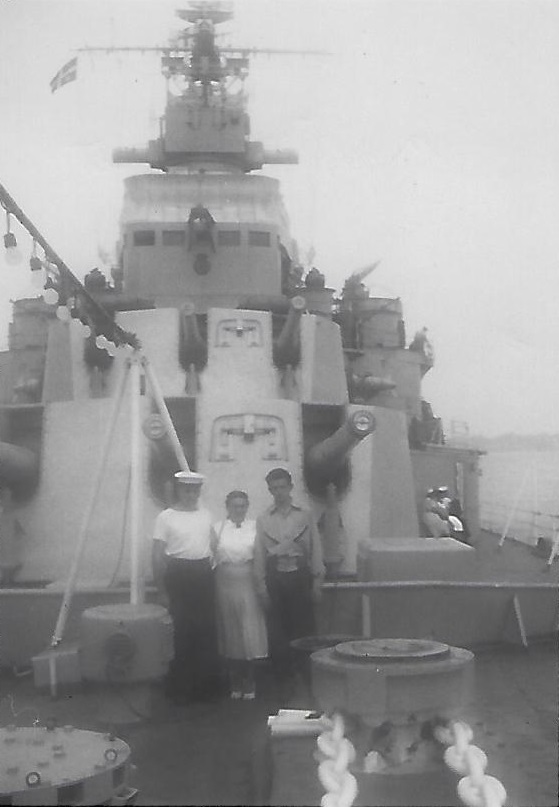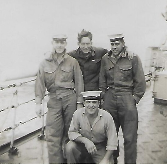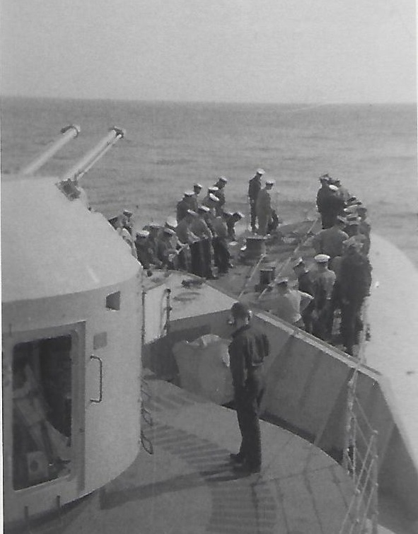 (JJJ11) J.J. Joly on the fo'c's'le of HMCS QUEBEC (JJJ12) J.J., Margolaine, Marcel on the fo'c's'le of HMCS QUEBEC (JJJ13) Secondary armament on HMCS QUEBEC (JJJ14) Sailors on HMCS QUEBEC - J.J. Joly standing, 1st on right (JJJ15) Léo Boulay & J.J. Joly on HMCS QUEBEC