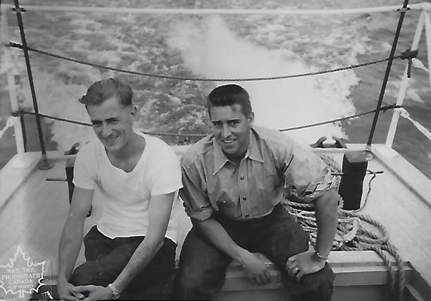 Ships served in: HMCS CARLETON - Enlisted 15 Jan 1948 for a period of 5 years as a Wtr. Prob., RCN HMCS NADEN - Drafted to NADEN 15 Jan 1948 as a Wtr. Prob., RCN HMCS STADACONA - Drafted to STADACONA 06 Sep 1948 as a Wtr. Prob., RCN HMCS BYTOWN - Drafted to BYTOWN 02 Mar 1949 as a Wtr. Prob., RCN * Rated OSWRS 01 Jul 1948 * Rated OSWR1 03 Sep 1948 * Trade Transfer - Rated OSPW1 01 Jul 1949 * Rated ABPW1 15 Apr 1949 * Rated LSPW1 15 Mar 1951 HMCS QUEBEC - Drafted to QUEBEC 03 Jan 1952 as a LSPW1, RCN HMCS STADACONA - Drafted to STADACONA 16 Jan 1953 as a LSPW1, RCN * Rated LSPW2 17 May 1951 (Backdated) HMCS QUEBEC - Drafted to QUEBEC 06 May 1953 as a LSPW2, RCN HMCS D'IBERVILLE - Drafted to D'IBERVILLE 25 Jun 1953 as a LSPW2, RCN * Rated P2PW2 15 Mar 1953 HMCS YORK - Drafted to YORK 18 Jan 1954 as a P2PW2, RCN HMCS BYTOWN - Drafted to BYTOWN 16 Jul 1954 as a P2PW2, RCN HMCS NADEN - Drafted to NADEN 22 Jan 1955 as a P2PW2, RCN HMCS STADACONA - Drafted to STADACONA 18 Apr 1955 as a P2PW2, RCN * Rated P2PW3 15 Apr 1955 (Advanced / backdated) HMCS MAGNIFICENT - Drafted to MAGNIFICENT 07 Oct 1955 as a P2PW3, RCN * Rated P1PW3 15 Mar 1957 HMCS NIOBE (London, England) - Drafted to HMCS NIOBE 15 Jun 1957 as a P1PW3, RCN HMCS STADACONA - Drafted to STADACONA 09 Jul 1957 as a P1PW3, RCN HMCS GLOUCESTER - Drafted to GLOUCESTER 13 Aug 1957 as a P1PW3, RCN HMCS STADACONA - Drafted to STADACONA 27 Apr 1959 as a P1PW3, RCN HMCS TERRA NOVA - Drafted to TERRA NOVA 06 Jun 1959 as a P1PW3, RCN HMCS GLOUCESTER - Drafted to GLOUCESTER 27 Jul 1961 as a P1PW3, RCN HMCS HOCHELAGA - Drafted to HOCHELAGA 03 May 1963 as a P1PW3, RCN HMCS GLOUCESTER - Drafted to GLOUCESTER 22 Jul 1963 as a P1PW3, RCN * Trade Transfer and Rated P1WR4 15 Nov 1963 HMCS SHEARWATER - Drafted to SHEARWATER 20 Aug 1964 as a P1WR4, RCN HMCS CORNWALLIS - Drafted to CORNWALLIS 19 Jul 1965 as a P1WR4, RCN * Rated C2WR4 01 Apr 1966 * Trade transfer FIN CLK 841 CFHQ Ottawa - Posted to CFHQ 23 Aug 1968 as a CPO2 Fin Clk, C.A.F. * Commenced Rehab Leave 19 Jul 1969 * Honourably Released 24 Nov 1969