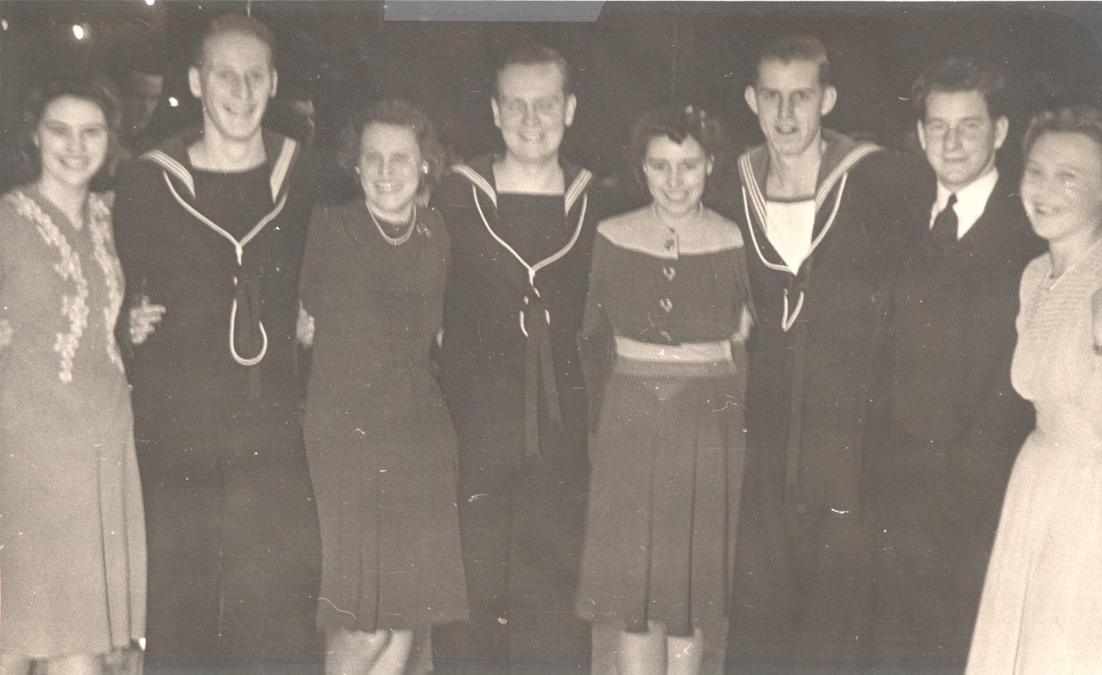 (JR06) Sailors and their dates at a dance. John Radley 3rd from right