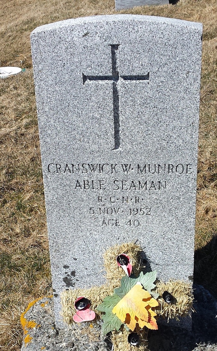 He was a son of Cranswick (Sr) Munroe and Lola Belle Hawes of Canso, Nova Scotia. He is buried in the Fourth Hill Cemetery, Canso, Guysborough Co., Nova Scotia.