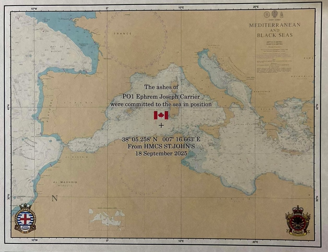* The ashes of PO1 Ephram Carrier where committed to the sea on 18 Sep 2025 from HMCS ST JOHN'S.
