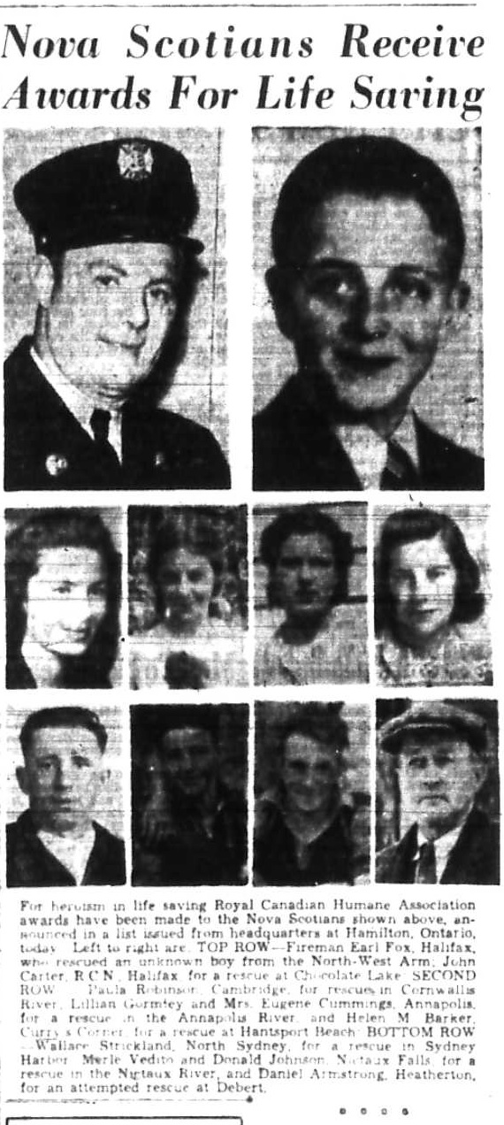 John Carter, RCN receives an award for a rescue at Chocolate Lake, near Halifax, NS