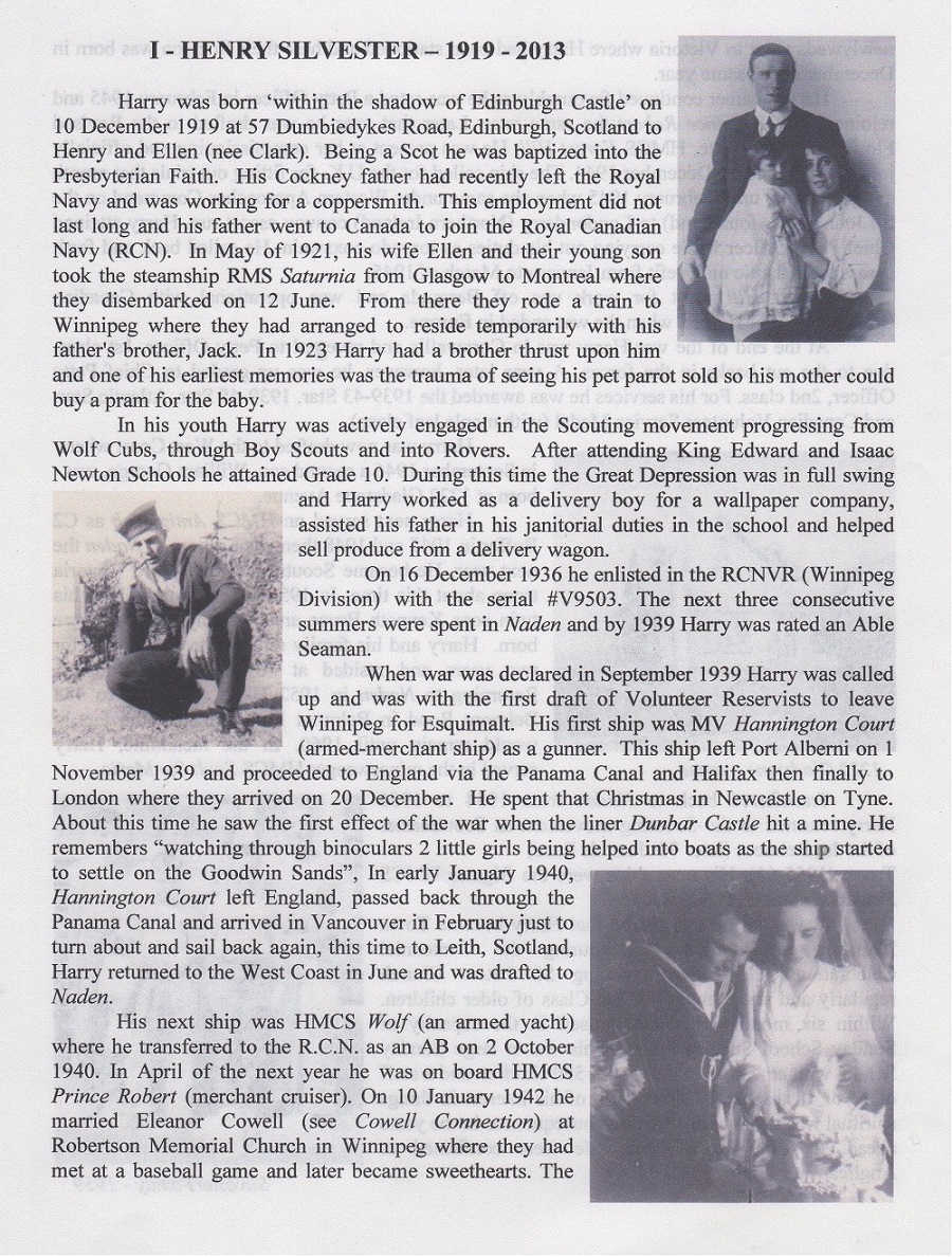 Harry's father, Harry Silvester served in the RN and RCN. His brother Jim Silvester served in the RCNVR and RCN.