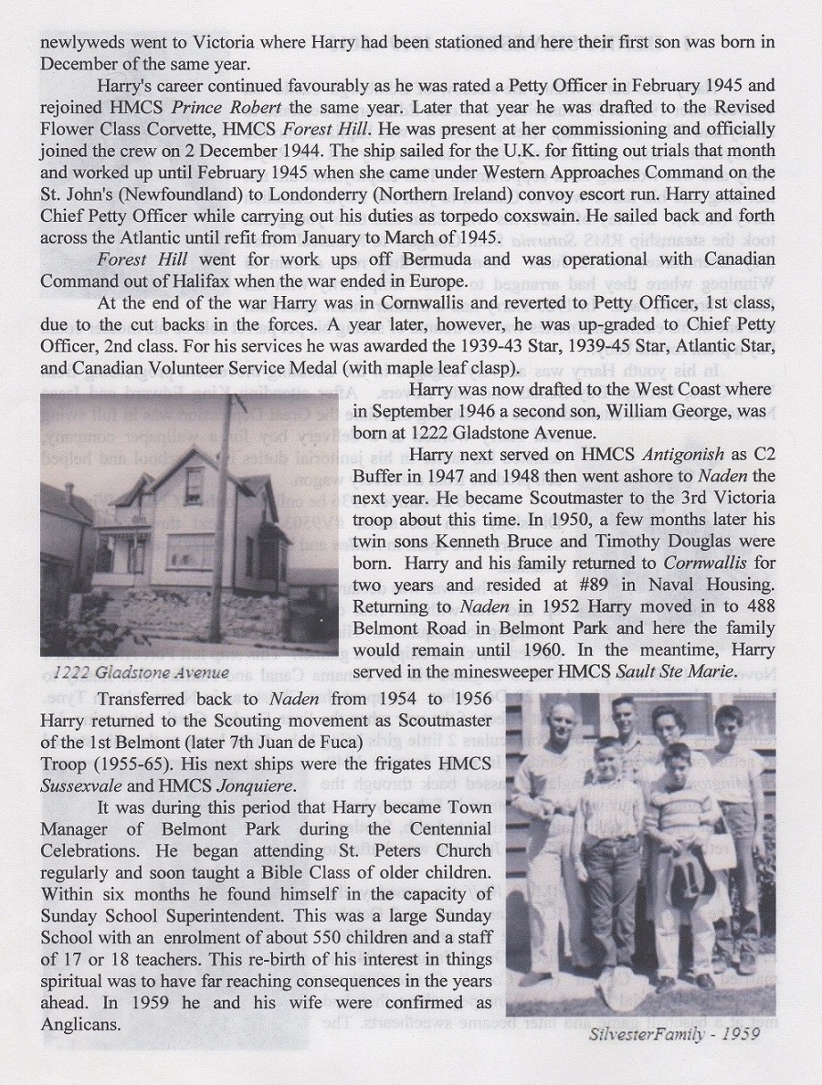 Ships served in: DEMS HANNINGTON COURT HMCS FOREST HILL - Served in Forest Hill as CPO, Cox'n
