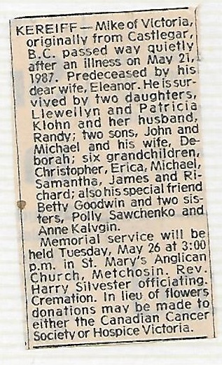 Died: 21 May 1987, Victoria, British Columbia