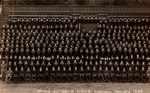 (RAH005) HMCS CHICOUTIMI K156 -ship's company photo 1944. Robert Hanna - 2nd row from top, 3rd from left // This photo is also posted on the ship's company photo page for HMCS CHICOUTIMI K156 (RAH006) Unknown departmental photo - HMCS CHICOUTIMI K156 - Robert Hanna top row, 1st on right (RAH007) HMCS CHICOUTIMI K156 in drydock in Bermuda. According to Robert Hanna, the ship was damaged during a Hedgehog training exercise that resulted in damage to the rudder.