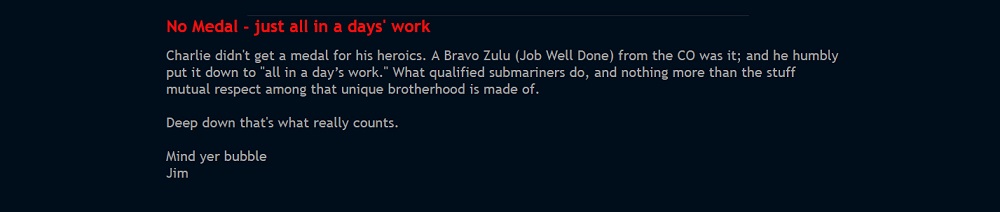 MCMANUS, Charles Peter - Age 77, L'Ardoise, Cape Breton, succumbed December 13, 2018 to cancer after a long and courageous battle. Charles is survived by his wife, Lorraine of 57 years; son, Mike McManus (Bernadine); daughters, Crystal and Leanne (Troy Conrad); grandsons, Justin, Keenan and Jacob; brothers, Brian, Toronto, Ont. and Jerry, Ottawa, Ont.; many in-laws and of course, his yard sale partner, Tina MacDonald. Charles served on all three of Canada's Oberons. He was a proud submariner who travelled the world. He worked with the 824 Silver Dart Cadets for 25 years and enjoyed every moment. He had a loud bark but a big heart. He was an active member of the L'Ardoise Legion, Branch 110 and an avid community volunteer, always willing to lend a hand. He loved spending winters in Costa Rica wearing his bold tropical shirts. He enjoyed football, volksmarching, yard sales, a good book, tinkering in his garage and of course spending time with his grandchildren. If you lived in Spryfield in the 70's or Ottawa in the 80's you probably saw Charlie and Lorraine, on their purple bicycle built for two, making their way downtown. More recently, Charlie loved going out to pick up the mail and catch up on local news. A loving husband, father and grandfather. Our papa will be sadly missed. The service will be Monday, December 17th, 11 a.m. in Holy Guardian Angel Church, L'Ardoise, Richmond Co. A reception/celebration of life will be held in the community center afterwards. In lieu of flowers, donations can be made to the L'Ardoise Volunteer Fire Department, Canadian Cancer Society or Richmond Strait Hospital. A big thanks to the nurses and doctors at Richmond Strait Hospital and the ER and Palliative staff at the Cape Breton Regional Hospital. Funeral arrangements are under the direction of Green's Funeral Home, Port Hawkesbury. (Halifax Chronicle Herald 15 Dec 2018)