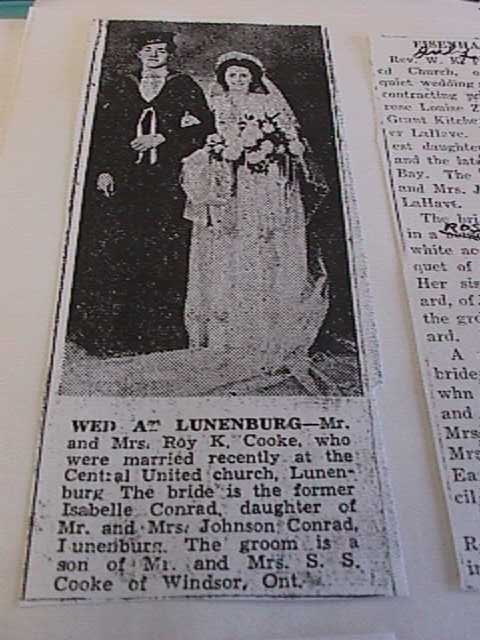 Roy was predecease by his first wife Isabelle Florence (née Conrad) Cooke (1921-1986). They married on 04 Jun 1943, Lunenburg, Lunenburg Co., NS.