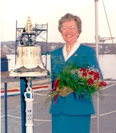 She further wrote that her proudest accomplishment was being a member of the "Sisterhood of Navy Wives" and her special honour was being the Sponsor of HMCS NANAIMO - the first of six new Maritime Coastal Defence Vessels assigned to Canada's Pacific Coast.