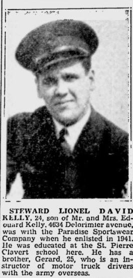 Steward Kelly died when ship, HMCS ATHABASKAN, was torpedoed and sunk in the English Channel.