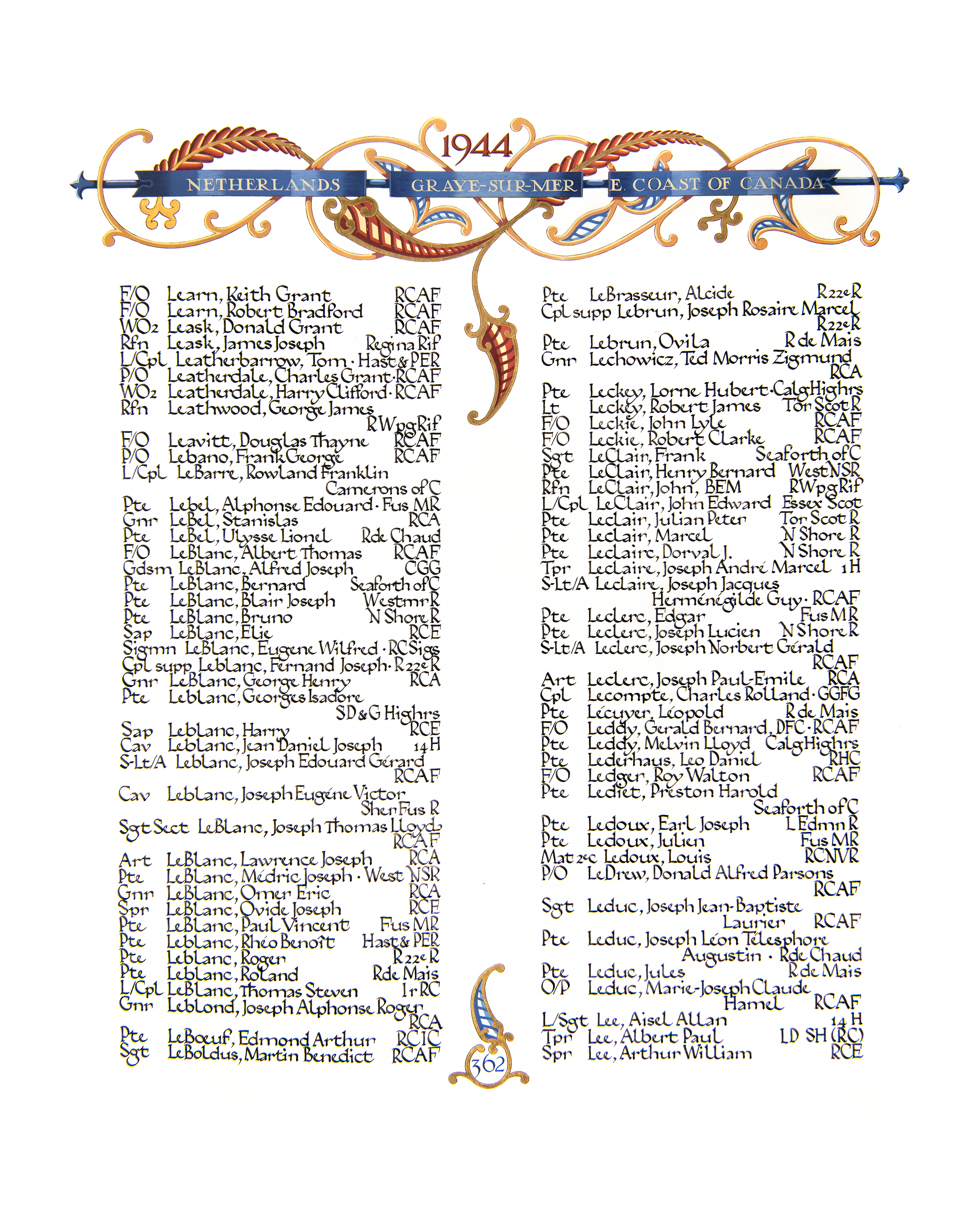AB Ledoux died when his ship, HMCS ATHABASKAN G07, was sunk in the English Channel on April 29, 1944. His body was recovered and he was buried in the Plouescat Communal Cemetery, Finistere, France.