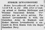 (SL01) Stoker Lewandowski - presumed dead - from the Windsor Daily Star (SL03) Article on Stoker Lewandowski - from the Windsor Daily Star (SL03) Documents from the Service file of Stanley Lewandowski