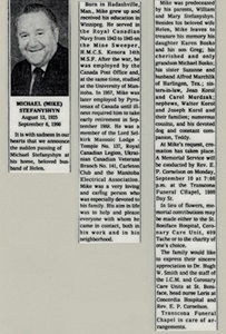 (MS01) Portrait of Stoker Mike Stefanyshyn (MS02) Certificate of Service (MS03) Obituary for Mike Stefanyshyn