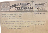 (EF01) Documents from the Service File of Ernest Fecteau (EF02) Telegram to the wife of Ernest Fecteau