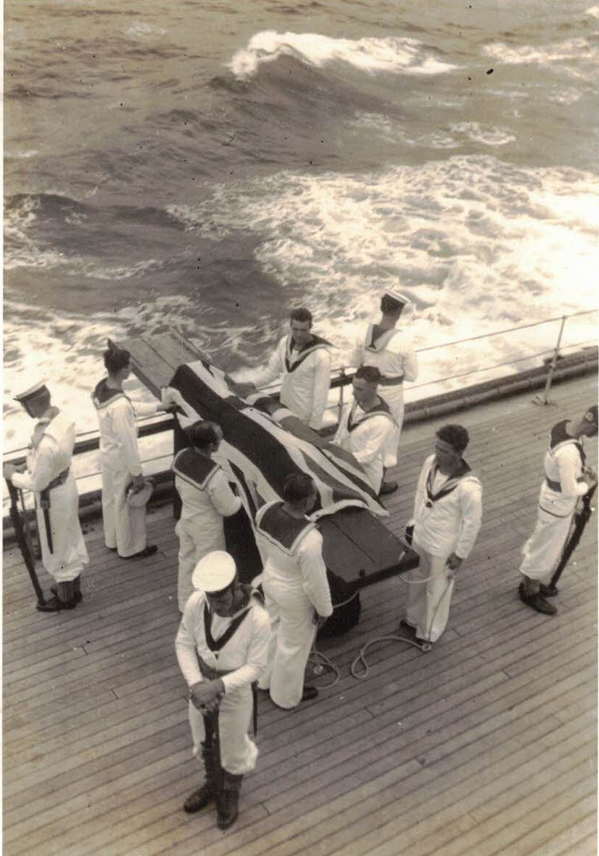 Burial at sea of AB Archibald Menzies, RCNR from HMCS PRINCE ROBERT on 16 Aug 1941