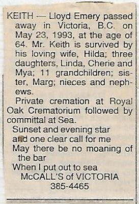 Died: 23 May 1993, Victoria, British Columbia