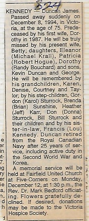 Served in the RCN 07 Mar 1937 - 06 Mar 1962