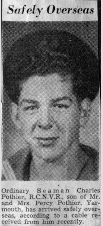 POTHIER, Charles Louis, AB ST, V4752, RCNVR, killed - 29 Apr 1944, HMCS ATHABASKAN - Son of Pius and Isabelle Pothier, of Yarmouth, Nova Scotia.