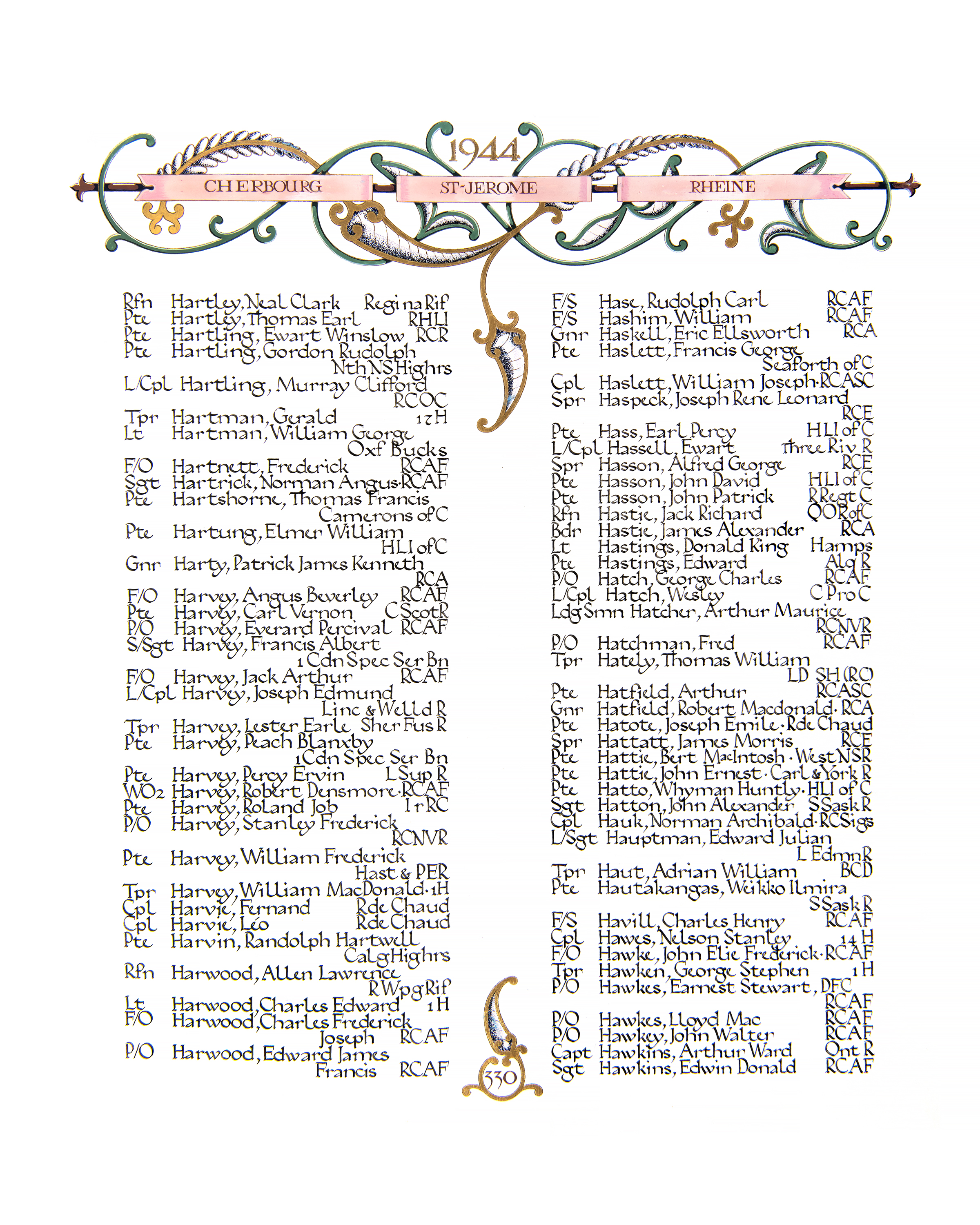 Ships served in: PORT ARTHUR DIVISION RCNVR - Enlisted 18 Sep 1941. Commenced Active Service 01 Oct 1941 as an Ordinary Seaman, RCNVR HMCS NADEN - Drafted to NADEN 30 Mar 1942 HMCS PRINCE ROBERT - Drafted to PRINCE ROBERT 15 Jun 1942 * Rated Able Seaman, RCNVR 14 Oct 1942 HMCS NADEN - Drafted to NADEN 20 Nov 1942 HMCS STADACONA - Drafted to STADACONA 22 Nov 1942 * Rated Radio Direction Finder 2nd Class 08 Jan 1943 HMCS NIOBE - Drafted to NIOBE 08 Mar 1943 HMCS CALGARY - Drafted to CALGARY 08 Feb 1943 HMCS STADACONA - Drafted to STADACONA 16 May 1943 HMCS ALBERNI - Drafted to ALBERNI 21 Jun 1943 * Rated Acting Leading Seaman 01 Oct 1943