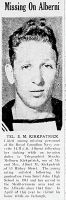 (SMK001) Telegraphist Stanley Kirkpatrick Missing on Alberni // The Saint John Times Globe // Courtesy of Operation Picture Me (SMK002) Telegraphist Stanley Kirkpatrick Declared Dead // The Saint John Times Globe // Courtesy of Operation Picture Me (SMK003) Service file for Stanley Kirkpatrick // Source: The Library and Archives of Canada