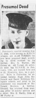 (AT01) AB Alan Turner Reported Missing - Article from the Winnipeg Evening Tribune (AT02) AB Alan Turner Presumed Dead - Article from the Winnipeg Evening Tribune (AT03) Documents from the Service File of Alan Turner