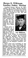Leading Stoker Wilkinson died when his ship, HMCS ALBERNI, was torpedoed and sunk in the English Channel on 21 Aug 1944 by U-480, southeast of the Isle of Wight. Fifty-nine of her ship's company lost their lives.
