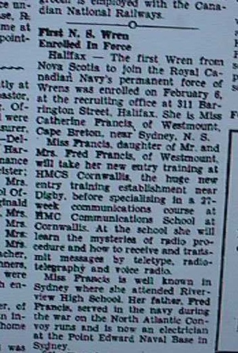Catherine joined the navy as a Wren 06 Feb 1956. Catherine's father, Fred Francis, served in the Navy during the Second World War.