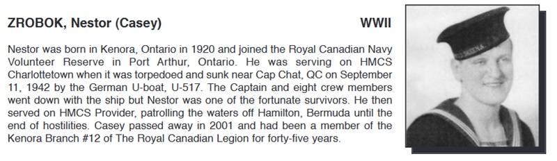Ships served in: HMCS CHARLOTTETOWN - Survived the sinking of HMCS CHARLOTTETOWN on 11 Sep 1942