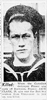 CLARK, John Richardson, OS, 3431, RCN, MPK - 25 Jun 1940, HMCS FRASER - Son of William and Ellen Verena Clark, of Vancouver, British Columbia.