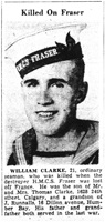 CLARKE, William, OS, 3276, RCN, MPK - 25 Jun 1940, HMCS FRASER - Son of Thomas and Florence Clarke, of Calgary, Alberta.