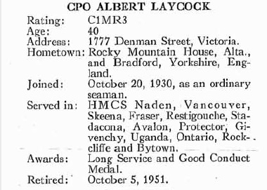 HMCS NADEN - Enlisted 20 Oct 1930 as an OS, RCNVR