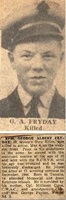 (GF01) Article on the death of Rifleman George Fryday - photo from his time in the RCNVR (GF02) Headstone for Rifleman Fryday (GF03) Service file for George Fryday