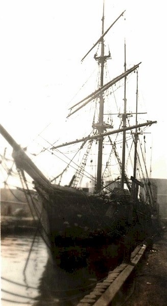 RE: photo EB19 - The following was submitted by Donald (Bud) Rose - "The two ships are moored at the South / West corner of St. John's harbour, across from what would become in 1940 - the Royal Canadian Navy Dock Yard. In 1941, the Nfld Dockyard underwent extensive and ongoing renovations to bring the yard up to war time requirements, and the first graving dock which was built of wood in 1882 and re-built with concrete in 1925 was again upgraded as required from 1941 to 1945. This area also became the RCN - N A D during WW II, and today is occupied by the Canadian Coast Guard. The large square building in the top right hand corner of the photo is the Nfld Hotel, completed and opened in 1926. This indicates that this photo was taken post 1926. The area in which the vessels are moored was renovated in 1940. To be more exact, we can look at the reason they were there. In 1883 the Nfld cod fishery was in serious decline. The main reason given was the extensive fishing on the Nfld grand banks by the French and the Norwegians - which were supported by the French. To counteract this, Nfld enacted the "Bait Protection Act" which prohibited foreign fishing vessels from obtaining any bait from Nfld. The bait was Capelin - Squid & Herring - usually only available inside Newfoundland's territorial waters. Any fishermen caught selling bait to foreigners were arrested and any foreign vessel caught inside territorial waters was seized. In 1922 world historical events had an impact. The French islands on St. Pierre & Miquelon are situated less than 20 miles from Nfld.'s southern shore. The Nfld bait protection act had a great impact on their economy, which changed in 1922. Two major events occurred in that year; the United States introduced prohibition and France repealed their 'Act' which prohibited the import of foreign liquors into French territory. The end result was St. Pierre & Miquelon becoming the main shipping point for "illegal" wines and spirts entering the U S. With this re-vitalization of their economy, they virtually abandon the fishery. In 1933 the U S repealed the prohibition act and the economy of St. Pierre & Miquelon collapsed. By 1934 they were back to fishing and illegally buying bait from Nfld fishermen, and those who were caught had their vessels seized [which were towed to St. John's]"