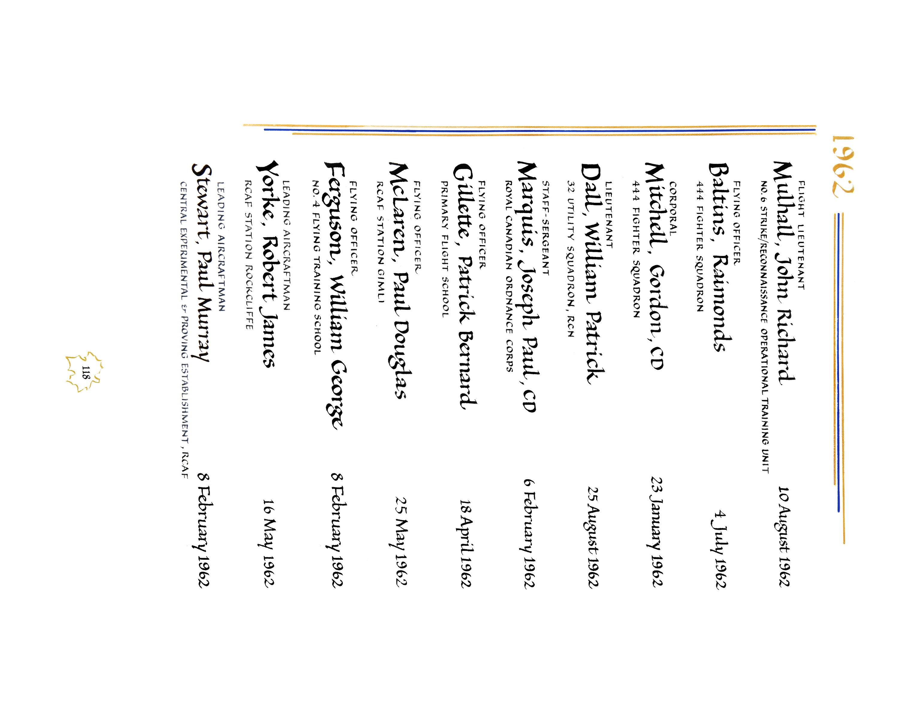 DALL, William Patrick, Lt (P), RCN, died - 25 Aug 1962, 32 Utility Squadron, RCN - Son of Thomas and Kathleen Pearl (née McHugh) Dall of Belleville, Ontario. Brother of Donald Joseph, Norman Thomas, John Bernard, Robert James, Gerald Michael, Wayne Francis, Mary Lorraine and Barbara Joan. Husband of Bernice Margaret (née Ryan) Dall, Port Wallis, Nova Scotia. Father of Mary Kathleen and Wilma Patrick. Lt. Dall enrolled on 23 August 1954 at HMCS Cataraqui in Kingston, Ontario. His civilian employment had been as a furniture salesman. He played semi-professional baseball for one year, and enjoyed playing hockey, football, and volleyball.