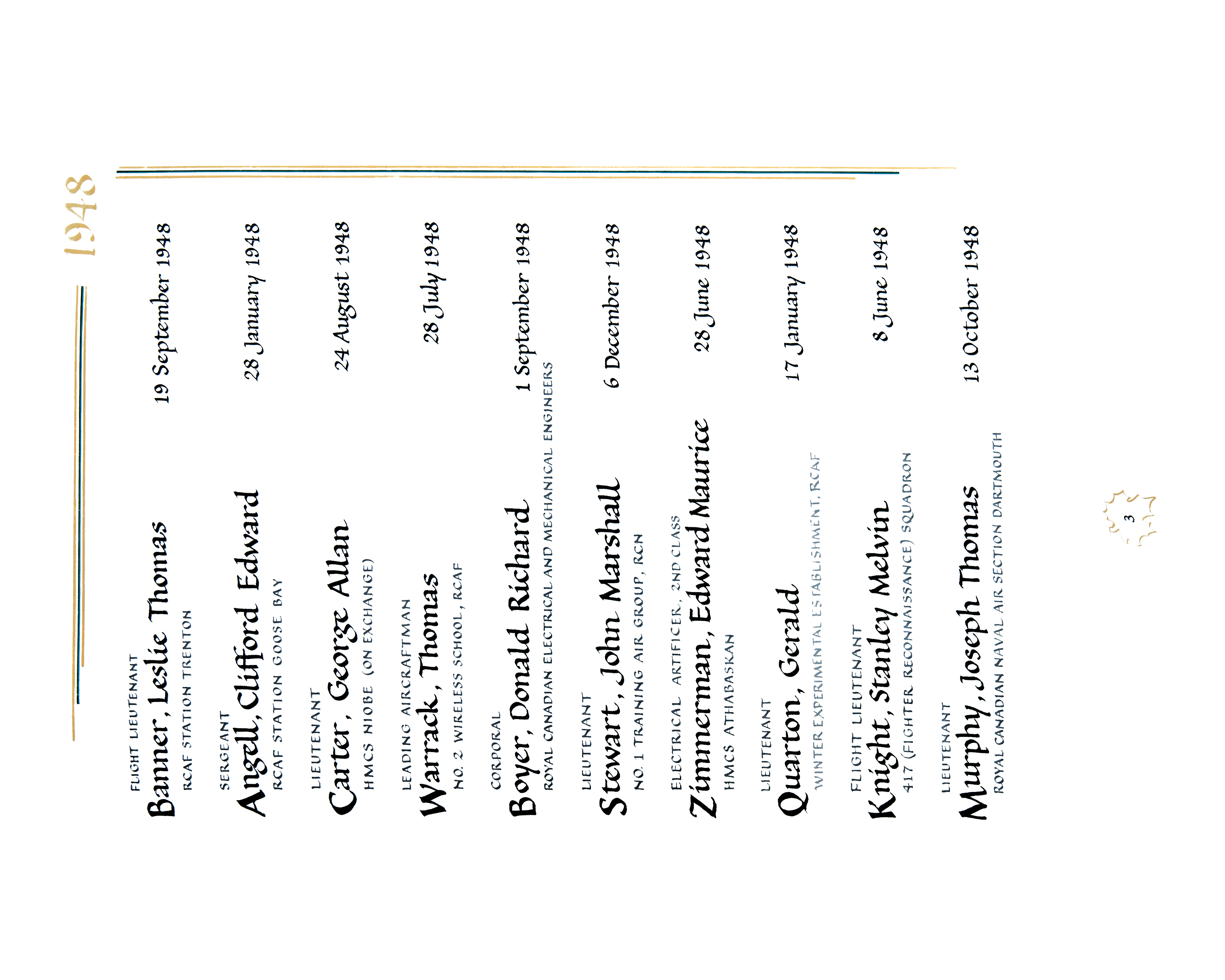 STEWART, John Marshall, Lt, O-70166, RCN, died - 06 Dec 1948, No. 1 Training Air Group, HMCS SHEARWATER - Son of Gordon W. and Mary Stewart of Francis, Saskatchewan. Husband of Barbara (née Howe) Stewart and father of Robert and John of Dartmouth, Nova Scotia. Brother of William, Duncan and Maida of Saskatchewan. Son-in-law of C.D. Howe.