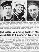 (AM01) Seaman Andrew Moore // Source: T. Eatons Co. Ltd Newsletter "Contact", Vol. 12 No. 5 dated 31 Dec 1940, For Winnipeg and Western Branches (AM02) Article on 3 of FRASER'S casualties from the Winnipeg district (AM03) Article on the death of Andrew More (AM04) Documents from the Service File of Andrew More