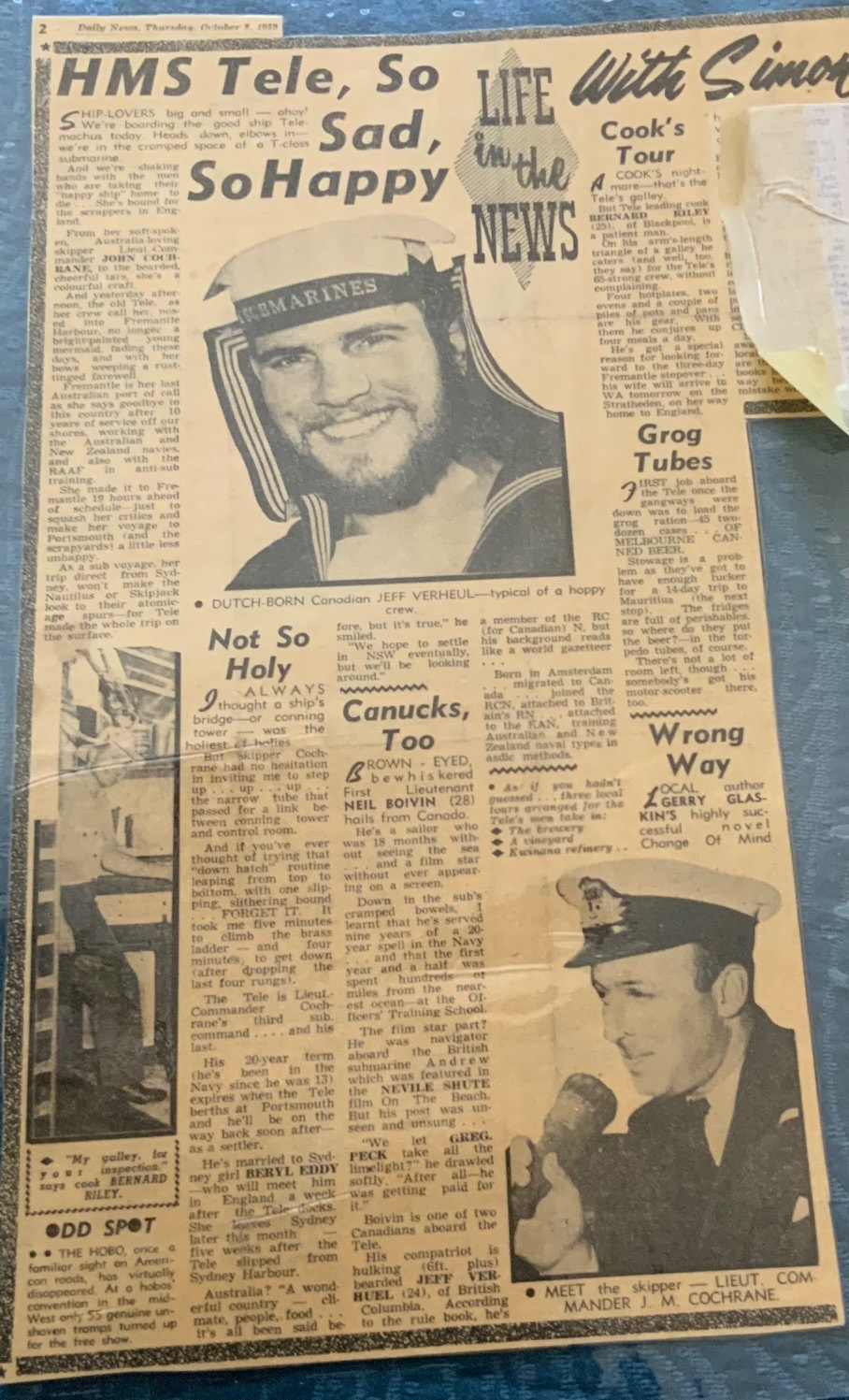 (below) Article on HMS TELEMACHUS that mentions 1st Lt Neil Boivin