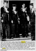 Ships served in: VANCOUVER DIVISION RCNVR - Enlisted 18 Nov 1937 as an Ordinary Seaman, RCNVR * Discharged 02 Oct 1938. Transferred to RCN. HMCS NADEN - Enlisted 03 Oct 1938 as an Ordinary Seaman, RCN HMCS FRASER - Drafted to FRASER 05 Jul 1939 HMCS STADACONA - Drafted to STADACONA 19 Sep 1939 HMCS ST LAURENT - Drafted to ST LAURENT 22 Oct 1939 * Rated Able Seaman, RCN 05 Feb 1940 HMCS STADACONA - Drafted to STADACONA 01 Apr 1940 HMCS ST LAURENT - Drafted to ST LAURENT 03 May 1940 HMCS FRASER - Drafted to FRASER 25 May 1940 * Survived the sinking of HMCS FRASER on 25 Jun 1940 HMCS MARGAREE - Drafted to MARGAREE 06 Sep 1940